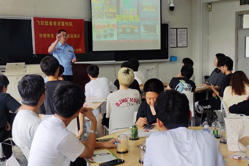 室外宣传展示环节,学院学生会同学自发组成了一支禁毒宣传志愿者队伍,为大家分发宣传单和小礼品。室内集中教育环节,干警让同学们围坐在摆放仿真毒品课桌周围,参与互动教学,使大家更直观,更全面,更深入了解新型毒品及禁毒常识。