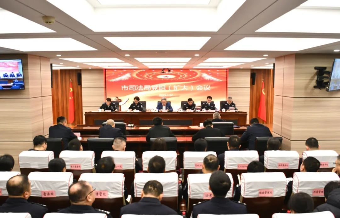 1月27日,市司法局召开党组(扩大)会议,传达学习习近平总书记在辽宁、沈阳考察时的重要讲话和重要指示精神以及全省、全市领导干部会议精神,深刻领会习近平总书记重要讲话和重要指示精神,按照全省、全市领导干部会议工作部署,研究部署学习宣传和贯彻落实工作。市司法局党组书记、局长张勇航主持会议并讲话。